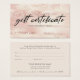 Certificado de presente de listras de ouro rosa moderno e elegante. Design apresenta um script de tipografia ''vale presente'' a preto sobre fundo rosa dourado e um nome comercial na frente. Personalize com seus detalhes no verso.