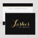 Coordena com o texto Dourado/Modelo de cartão de negócios preto do script Glam Lashes até 1201AM. Uma fonte glamourosa e cursiva soletra "Lashes" em ouro falso neste modelo de certificado de presente personalizável. Adicione seu nome ou nome comercial abaixo para obter um logotipo personalizado. Projetado para salões de extensão de pestanas, técnicos de lash, artistas de maquiagem e muito mais. © 1201AM CREATIVE