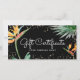 Deixe que seus clientes ofereçam seus serviços aos seus amigos com esses certificados de presentes de nome personalizado elegantes, sofisticados, simples e modernos. Surpreendentes pássaros de aquarela tropical, coloridos e dramáticos, de flores do paraíso, falsa brilho dourado, e roteiro personalizado de caligrafia branca sobrepõem um fundo preto, dramático e na moda. No verso, há ampla margem para o remetente escrever os nomes "Para" e "De", a quantidade e a data de expiração na área retangular branca cercada por brilho dourado falso espalhado sobre uma borda cor-de-rosa rosa empoeirada. Personalize com seu nome e informações de negócios. Disponível com envelopes brancos. Faz uma declaração chic, profissional e na moda onde quer que você vá. Cartões de visitas correspondentes e outros produtos também estão disponíveis: https://www.zazzle.com/tropical_floral_script_gold_on_black_beauty_salon_business_card-256696260630306995 Apenas digite seu nome comercial e as informações de contato na seção "Personalizar este Modelo" e você pode personalizar facilmente este certificado de presente. Por favor, me mande mensagens com quaisquer perguntas ou solicitações.