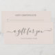 Um guião minimalista simples e elegante, cor-de-rosa e certificado de presente branco. Este script elegante Certificado Gift ajustado perfeitamente dentro de um envelope comercial nº 10 padrão. Perfeito para a sua marca e negócios.