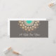 Esta ilustração típica da flor de lótus tem uma bela fusão da modernidade e da nova era. O medalhão de rosetas de folha de ouro inspirado em Mandala é perfeitamente acentuado pelo fundo taupe. Centro azul turquesa.