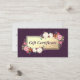 Modelo de cartão de negócios de Certificado de Presente de Papel Floral ou Boutique de Papel Floral e Dourado Roxo Moderno Chic e Damask. Um Modelo de Certificado de Presente de Salão Elegante ou Boutique. Apresentando um branco botânico e um Design Dourado com flores coloridas de aquarela. Perfeito para um Salão de Beleza, Bar de Nail e profissões relacionadas.
