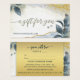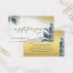 Certificado de presente tamanho cartão de negócios com um design artístico com folhas em brilhos dourados.