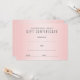 Certificado de Presente Moderno do Chique Rosa Quartz