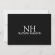 Certificado de presente comercial moderno com um design simples e mínimo com seu monograma em uma fonte em negrito juntamente com seu nome em branco sobre um fundo preto.