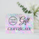 certificado de presente opal de glitter faux