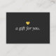 Design divertida e memorável com imagem digital do coração de folha de ouro. Um cartão de presente super bonito disfarçado de um certificado de presente para ambas as partes. Para obter materiais de marketing, design personalizado ou pesquisa de logotipo adicionais, entre em contato comigo em maurareed.designs@gmail.com e eu responderei dentro de 24 horas. Para o transporte, o estoque de papelão inquirirá e os preços, entre em contato direto com a Zazzle.