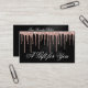 Esta cartão de visita de certidão de presente giro e glamourosa é perfeita para uma na moda e profissional de negócios. Ele apresenta pingos de brilho rosa dourado cintilantes impressos em falso sobre um fundo metálico escovado preto. A tipografia é uma elegante escrita cursiva com uma fonte serif moderna a corresponder. É chic, bonito, exclusivo e luxuoso; a maneira perfeita de anunciar sua empresa e estilizar seu marketing e material de propaganda para seus clientes. ***NOTA DE DESIGN IMPORTANTE: Para qualquer solicitação de design personalizada, como solicitações de correspondência de produtos, alterações de cor, mudanças de posicionamento ou qualquer outra solicitação de alteração, clique no botão "CONTACT" ou envie um e-mail ao designer diretamente em lafemme.art@gmail.com. Você pode até enviar um e-mail para ela solicitando um design completamente personalizado e novo.