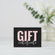 Certificado Mínimo de Oferta Comercial para Chic do Logotipo. Adicione seu logotipo para torná-lo seu. Um certificado de presente simples e divertido para marcas corporativas, pequenas empresas ou indivíduos como artistas de maquiagem, estéticos, cabeleireiros e muito mais! Neste momento, é uma coloração branca e preta, com "GIFT" num rosa pincelado, mas você pode trocar qualquer uma das cores para o que quiser usar! Uma mistura de tipografia moderna e escrita para um olhar profissional, mas chique.