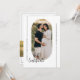 Nosso cartão-presente moderno e elegante apresenta design minimalista, tipografia de na moda e duas fotos, incluindo uma foto de arco duplo/oval. Adicione seus detalhes de contato, como site, identificador de mídia social e e-mail. Fotos de prostooleh / Freepik.
