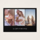 Certificado de presente para negócios de fotografia com um design simples e minimalista com "Um presente para você" junto com uma colagem de fotos com três de suas fotos verticais favoritas sobre fundo preto. A parte de trás tem o modelo do certificado-presente e as informações de contato em preto e branco. Esta design moderna é perfeita para um fotógrafo profissional. NOTA: os envelopes estão inclusos.
