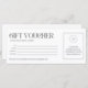 Ofereça aos seus clientes uma forma profissional e na moda para oferecer o dom escolhido com este modelo de certificado de presente personalizável. Projetado em um layout preto e branco limpo, esse comprovante inclui campos editáveis para nome do destinatário, remetente, quantia e data de expiração. Personalize com seu nome comercial, logotipo e detalhes de contato para torná-lo exclusivo para sua marca. Perfeito para salões, butiques, restaurantes ou qualquer pequena empresa que queira fornecer vales-presente de forma polida.