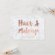 Um moderno e na moda de certificado de presente e uma maquiagem de cartão de artista com estilo moderno de letra de pincel em folha de ouro falso rosa num fundo de mármore branco elegante e tenda. Se precisar de alguma personalização, não hesite em me contactar