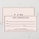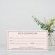 Certificado simples de presente cor-de-rosa com um design moderno e minimalista com uma fronteira. A parte de trás tem seu logotipo inicial de monograma rodeado por uma borda. Todo o texto é preto e pode ser alterado para qualquer cor desejada. Este certificado de presente é excelente para um salão de beleza ou spa, mas o estilo clássico pode ser usado para qualquer negócio.