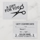 Um certificado retro, moderno e do divertimento do cartão de visita de presente com as palavras de "certificado presente" em um grande, impressão alto com um par de tesouras/tesouras em um fundo cinzento do polkadot. Aperfeiçoe para cabeleireiros, hairstylists, armários do cabelo, cosmetologists, cosmetologia, salões de beleza, termas e mais!