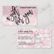 Este é o perfeito cartão de visita de certificado de presente para uma moda, na moda, menina, e empresária moderna. Este design apresenta uma tipografia simples de bruxos pretos em um brilho fino rosa-claro e um gradiente vírgula cor-de-mácula de pedra cor-de-rosa glamouroso e fundo chic. É a maneira perfeita de permitir que seus clientes comprar um presente para sua família e amigos e, ao mesmo tempo, promova sua empresa. ***NOTA DE DESIGN IMPORTANTE: Para qualquer solicitação de design personalizada, como solicitações de correspondência de produtos, alterações de cor, mudanças de posicionamento ou qualquer outra solicitação de alteração, clique no botão "CONTACT" ou envie um e-mail ao designer diretamente em lafemme.art@gmail.com. Você pode até enviar um e-mail para ela solicitando um design completamente personalizado e novo.