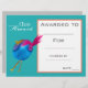 Um prêmio de certificado de prêmio de classe moderna na moda com uma imagem de pássaro aquoso fofo perfeita para encorajar um jovem estudante. Você pode escrever em seus próprios detalhes. Um recurso de excelente para qualquer tipo de professor de sala de aula.