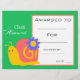 Um prêmio de certificado de prêmio na moda moderno com uma imagem de caracol fofa perfeita para encorajar um jovem estudante. Você pode escrever em seus próprios detalhes. Um recurso de excelente para qualquer tipo de professor de sala de aula.