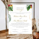 Certificado de casamento tropical, palmeiras, flores amarela e vermelha.