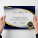 Honor achievement in style with this Elegant Blue & Gold Certificate of Excellence Template, designed to deliver a bold, modern, and distinguished presentation. Featuring flowing blue and gold wave accents, a refined neutral background, graceful script typography for the recipient’s name, and a classic gold award seal, this certificate instantly communicates prestige and accomplishment. The balanced layout keeps the recipient’s name as the focal point while providing clearly defined sections for award details, date, and signature. Its sleek and professional design makes it ideal for corporate recognition, employee awards, academic excellence, leadership honors, training completions, ministry acknowledgments, volunteer appreciation, and special milestones.