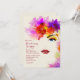 Um convite impressionante com uma visão parcial do rosto de uma mulher rodeada de muitas flores coloridas e deslumbrantes. <br/>O cartão é fácil de personalizar com sua redação, fonte, cor da fonte, opções de forma de papel e escolha de seis tipos de papel.<br/>() Não exatamente o que você está procurando? Todos os nossos produtos podem ser personalizados para atender às suas necessidades sem custo extra.<br/>() Basta entrar em contato conosco em askcottonlamb@gmail.com<br/>() Coordenando os produtos disponíveis: Determinadas placas de resposta de visão<br/>Determinadas etiquetas de endereço de retorno de brilho