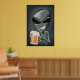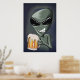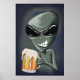 Uma alienígena com uma cerveja gelada e gelada.