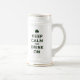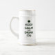 Caneca de cerveja da cerveja do dia de St Patrick com trevo irlandês e slogan engraçado - mantenha a calma e a beba sobre - paródia do poster britânico da propaganda de WWII. Escolha seus próprios caneca de cerveja/estilo e cor da caneca!