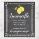 Aparência de quadro-negro com limões amarelos desenhados à mão. Rótulo de garrafa alta de Limoncello. Personalizado com tipografia moderna e borda de arabescos sofisticados. Personalize todas as fontes e textos. Feito à mão por si. Encomende extras para presentes de última hora. O Limoncello Italiano caseiro é uma lembrancinha de casamento maravilhosa para os convidados. Para ver a linha completa de produtos de licor Limoncello, visite "The Hungarican Princess - A Boutique™" @zazzle.com/hungaricanprincess. Procure em nosso "Departamento da Coleção Limoncello". Dica: Rótulos de garrafas pequenas impermeáveis estão disponíveis neste estilo.