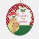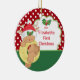Os enfeites de natal datado personalizados bonitos da foto que caracterizam um cervo adorável do bebê que dorme em um grupo da lua vermelha & verde fundo pontilhado em uma polca, apenas adicionam SUA FOTO! Aperfeiçoe para o primeiro Natal do bebé ou do bebé & o segundo Natal. Um presente do Natal da maravilha sure a ser estimado por muitos próximos anos.