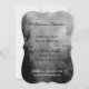 Um modelo de convite personalizado com letras pretas grungy e uma letra preta num céu assustador de Halloween com árvores negras ao longo de uma estrada assombrada, corvos góticos e uma lua de cheio nublada em preto, branco e cinzas. Clique em Personalizar para alterar suas fontes, dimensionamento e muito mais, até mesmo salvar seu design para mais tarde.