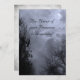 Convites de casamento personalizados com um céu assombrado com árvores azuis negras ao longo de uma estrada escura, ravens góticos e uma lua de cheio nublada na frente e cartas de script vintage em preto e vermelho no verso com um fundo de pergaminho preto e branco. Personalize-o para alterar fontes, cores, adicionar ou remover texto, alterar planos de fundo e até salvar seu design para mais tarde.