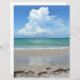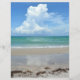 Uma nuvem de tempestade a surgir no horizonte sobre um mar azul tropical. Este livro de rascunho costeiro tem tudo, céu azul, nuvens brancas, oceano aquático e praia arenosa. O céu e as nuvens refletem-se numa piscina de marés na areia da praia enquanto o surf se quebra ao longo da costa. Esta imagem é original da fotografia de Fort Lauderdale Beach por JLW_PHOTOGRAPHY
