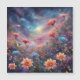 Céu cósmico com flores fantásticas