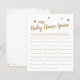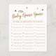 O céu elegante enviou um cartão de "jogo do nome do bebê" do chá de fraldas com falsa halo dourado e estrelas. Os textos são editáveis. Um jogo perfeito para jogar durante o chá. aos hóspedes para anotar nomes de bebês que começam com cada alfabeto. Quem termina todos os alfabetos primeiro ganha!