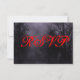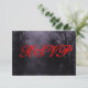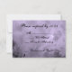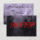 Uma modelo de placa RSVP de resposta personalizada com letras nojentas em um céu nojento de Halloween com árvores negras ao longo de uma estrada sombria assombrada, ravens góticos e uma lua de cheio nublada em uma névoa roxa. Personalize-o para alterar fontes, dimensionar e muito mais, até mesmo salve seu design para mais tarde.