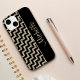 Este é um caso especialmente bonito para ela, com os chevrons pretos contrastados com os chevrons de ouro falso em ouro prateado em um padrão diagonal. Uma borda preta tem seu nome em ouro correspondente. Um caso único, elegante e atraente! *Observe que a imagem é impressa no gabinete, que não contém nenhum brilho ou substância metálica.*