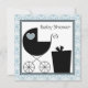 O elegante bebê azul e negro, bebê chá de convite para modelo. Este adorável convite para chás preto e azul-bebê é facilmente personalizado para o seu evento, simplesmente escolhendo o botão "Personalizar!" para começar a adicionar os detalhes do seu evento, estilo da fonte, tamanho da fonte e cor e texto. Observe que todos os adesivos, cartões e designs de convite que você encontrará no Zazzle são gráficos impressos sem joias reais, arcos, levantados, gravados, ou peças ou peças adicionadas.