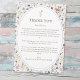 Este doce cartão de agradecimento floral é para um evento de chá de bebê, com o tema 'Novo capítulo'. O cartão apresenta ilustrações ao fundo de flores silvestres da primavera em cores suaves. Fonte de estilo de texto inglês antigo clássico para um sentimento de livros de ilustração infantil antigos.