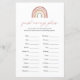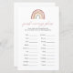 Cartão de jogo de frase da mamãe para chá de bebê temático Arco-íris apresenta uma ilustração de arco-íris em aquarela e fonte elegante em estilo manuscrito.