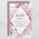 Convites de Chá de Bebê Boho Rosa Poeira e Violeta com Flores Botânicas e Verduras Aquarela para Primavera ou Verão - inclui tipografia de script bonita e elegante com flores botânicas modernas e verduras para a celebração especial da futura mãe para um novo bebê menino, bebê menina ou anúncio neutro de gênero.
