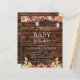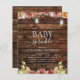 Convites de Chá de Bebê com Flores de Girassol Laranja, Amarelo e Borgonha em Madeira Escura com Jarras de Mason em Luzes de Corda para Celebração de Outono ou Outonal da Futura Mãe - inclui tipografia elegante e bonita para a ocasião especial.