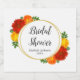 Vermelho de outono, laranja e flores douradas bordeando uma moldura circular dourada com eucalipto e folhagens botânicas para um evento de outono