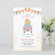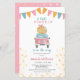 Este convite de chá de bebê de meninas outono é feito com um carro vintage em aquarela rosa combinado com abóbora de outono decorada com um laço rosa e uma guirlanda multicolorida de bandeiras, complementado por um padrão de bolinhas douradas e texto suculento e brilhante de uma pequena abóbora. O verso do convite é turquesa com um padrão de bolinhas douradas.