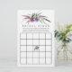Cartões de bingo de chá de noiva de plantas suculentas trendy com penas boho personalizáveis para os detalhes do seu evento.