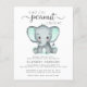Um convite de chá de bebê gender-neutral fofo e econômico por correio apresentando "Um Pequeno Amendoim Doce Está a Caminho" (você pode mudar para "dele" ou "dela") escrito em uma mistura de tipografia moderna cinza suave e caligrafia estilosa, e uma aquarela verde menta pastel de um elefante bebê. Personalize o nome da mãe e os detalhes do chá de bebê por correio em tipografia cinza simples.