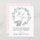 Cartões de agradecimentos de chá de menina bonita com "Obrigado" em um roteiro de na moda com um inchaço cardíaco e uma aquarela de um elefante de bebê rosa em uma coroa de verde de eucalipto. Personalize seu obrigado e adicione seu(s) nome(s) em um script de assinatura ou deixe o vazio para uma nota manuscrita.
