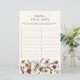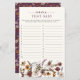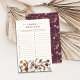 Este jogo para chá de bebê Wildflower Baby Shower combina elegância e charme. Ele apresenta flores silvestres pintadas à mão em aquarela em tons ricos de borgonha, dourado, creme e roxo, destacadas por folhagens exuberantes. Adequadas para qualquer estação, essas flores silvestres são organizadas em um deslumbrante buquê lateral, proporcionando uma sensação moderna e fresca. Com um padrão borgonha no verso, este cartão de jogo oferece versatilidade e sofisticação, tornando-o uma atividade divertida e elegante para os convidados do seu chá de bebê.