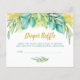 Bilhete de Sorteio de Fraldas com bela composição de folhas de eucalipto, ramos de oliveira e folhagens. Tons de verde e amarelo, jade, ouro antigo, cinza esverdeado. Arte em aquarela elegante e moderna para chá de bebê temático de verão ou folhagens. Insira no convite do chá de bebê, pois é ligeiramente menor que o próprio convite e cabe perfeitamente em um envelope.
