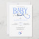 Convite para CHÁ de BABY BOY azul adorável com tipografia BABY azul e pacificador pouco azul