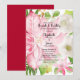 Os convites para chás de casamento de casais de Natal, "brunch" e "bubble" apresentam uma grande poinsettia cor-de-rosa, flores de inverno, pinheiros e folhas sagradas e os seus detalhes em caracteres quicos. CORRESPONDENDO a itens na nossa loja.